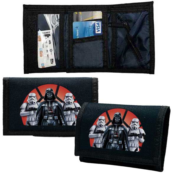 Licencovaná peňaženka s motívom Star Wars. Zapínanie na suchý zips. Peňaženka obsahuje priehradky na bankovky, karty a mince. Na chrbtovej časti je výrazné logo Star Wars.